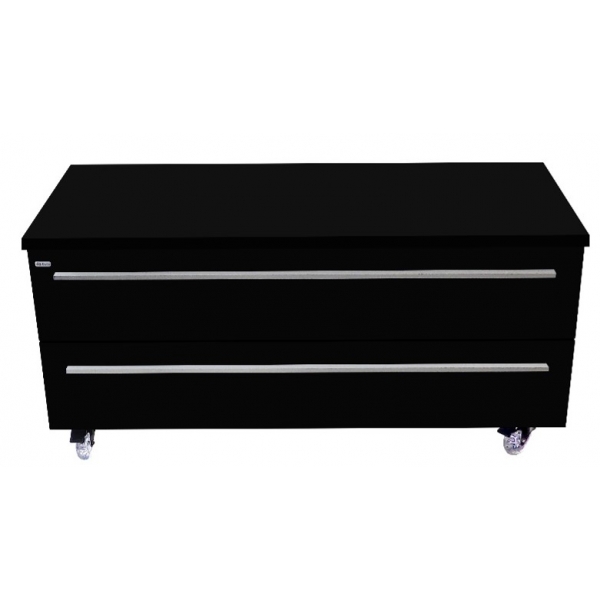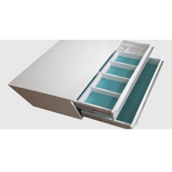 Produto fabricado em MDF (15mm e 18mm) laqueado com pintura UV / Puxadores de alumínio cromado / Gavetas com corrediças telescópicas / Rodízios de gel, ultra deslizantes e com dispositivos de freio / Gaveta com útil divisor interno e manta antiderrapante.